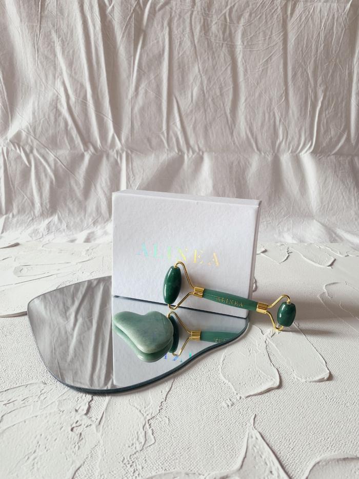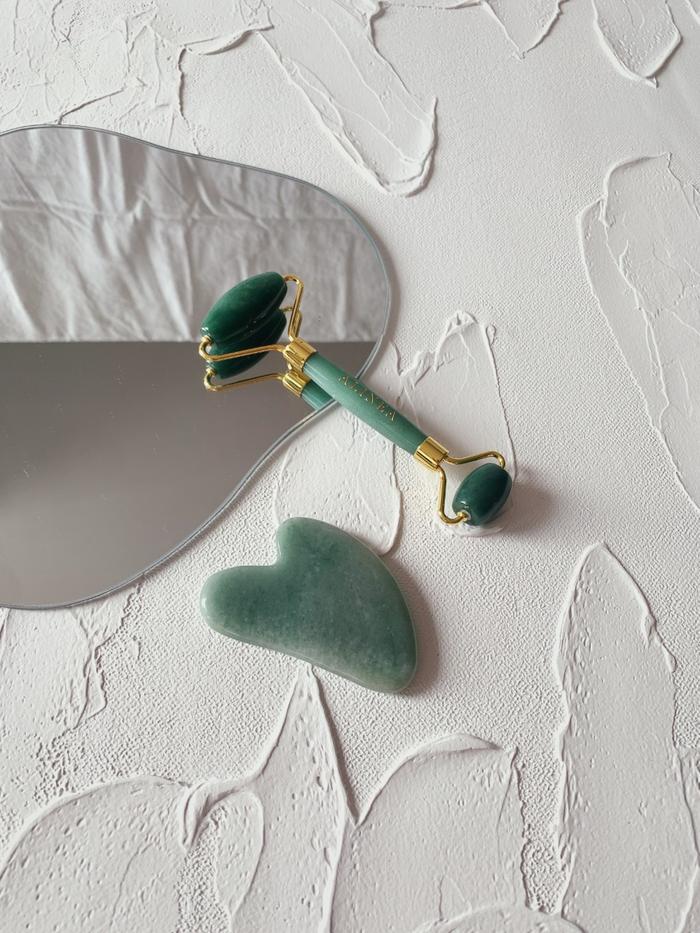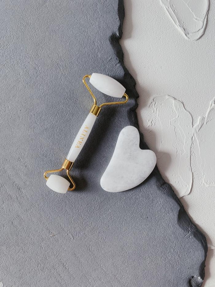 [PAKET] JADE GUASHA ROLLER & JADE GUASHA MASSAGE TOOL - WHITE JADE