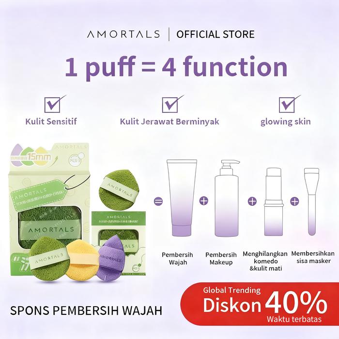 【SPESIAL 12.12】AMORTALS PUFF PEMBERSIH WAJAH MULTIFUNGSI | PENGHAPUS MAKEUP | ANGKAT KOMEDO | BUSA MELIMPAH | AMAN UNTUK