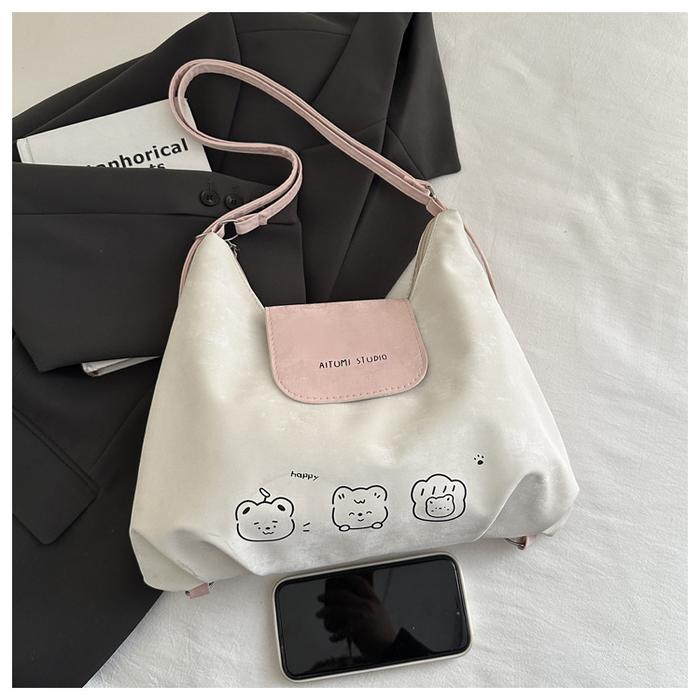 TAS WANITA MOTIF LUCU TIGA DALAM SATU DENGAN MOTIF PINK GIRLY TAS SELEMPANG BAHU BERTEKSTUR SEDERHANA KASUAL TAS RANSEL