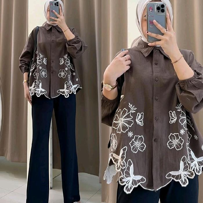 SAVINA BLOUSE BORDIR LINEN RAMI ATASAN WANITA CASUAL - BROKENWHITE, LD 110 CM