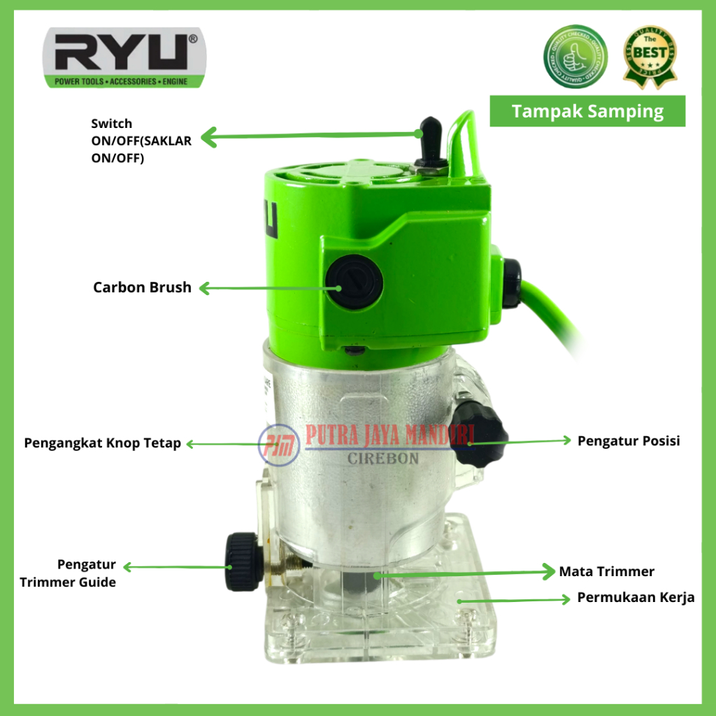 Ryu Mesin Router Trimmer Profil Kayu Penghalus Tepi Kusen Polywood RTR 6 -1 100% Original