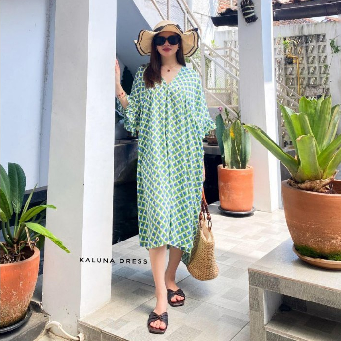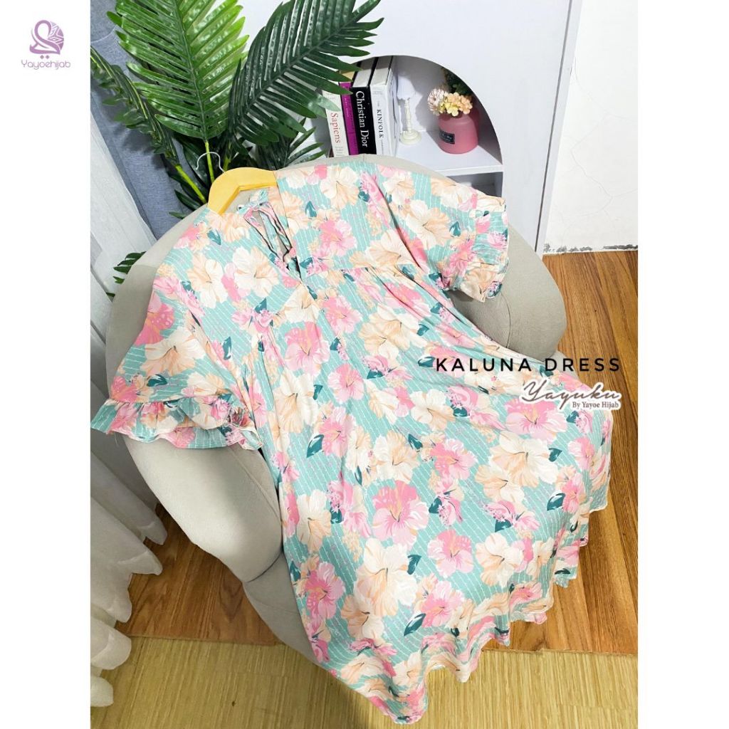 KALUNA DRESS JUMBO MOTIF DASTER WANITA VARIASI TALI PUNGGUNG BISA DIADJUST BAHAN RAYON YAYUKU