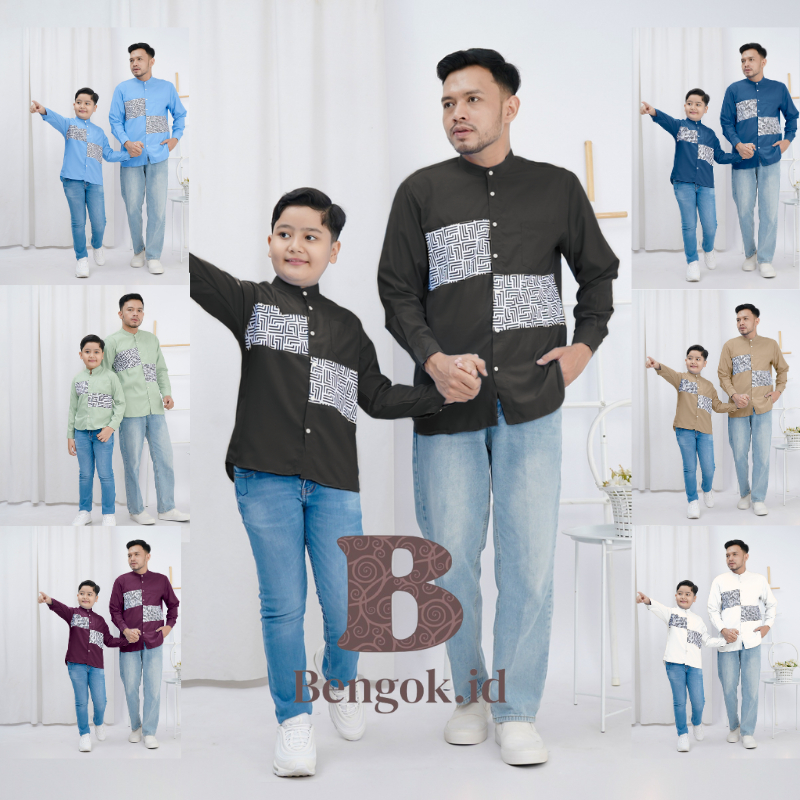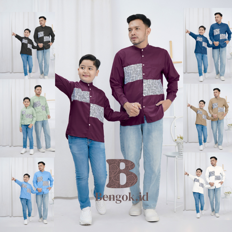 [Star] Baju Koko Couple Ayah Anak Laki-Laki Lengan panjang Warna Burgundy