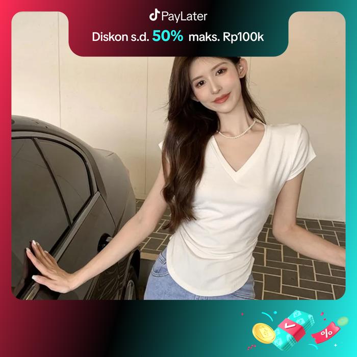 (PART 1) OMNIA T0P V-NECK SHORT SLEEVE CROP T0P OVAL - HITAM, S