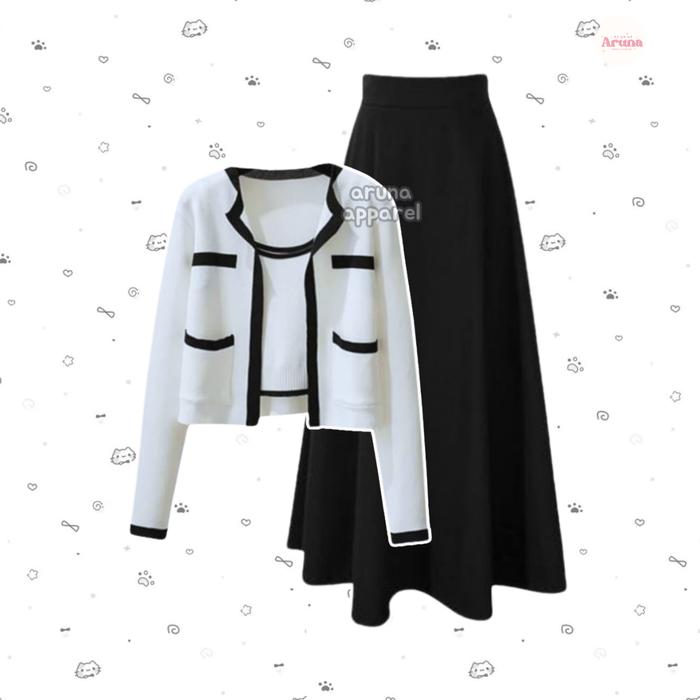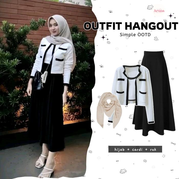 ARUNA - 3IN1 ONE SET OUTFIT NONGKI WANITA KOREAN (HIJAB , CARDI , ROK) SETELAN CEWEK KULIAH AA398 MUSLIM REMAJA - HIJAB