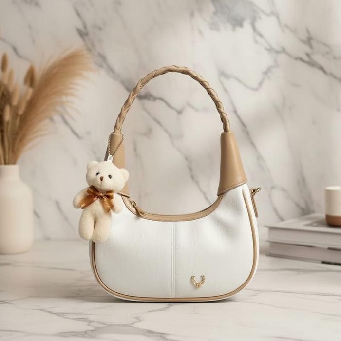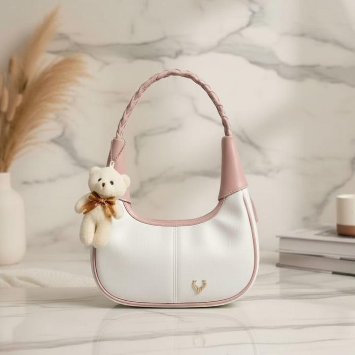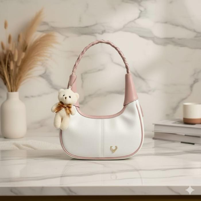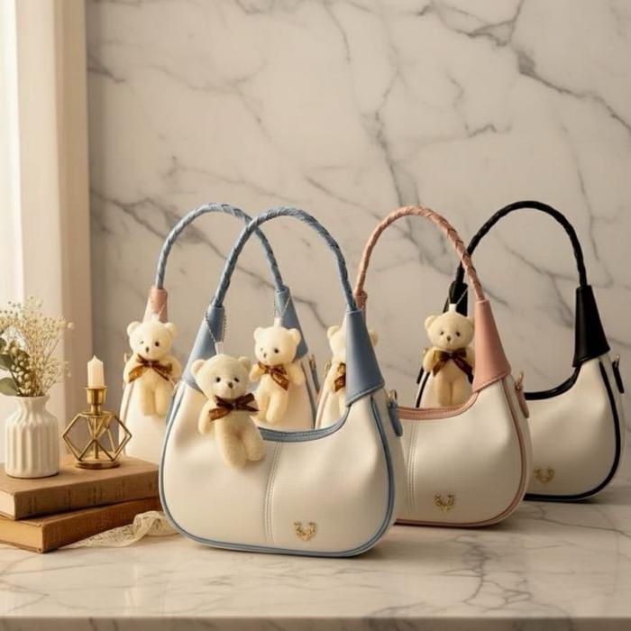NADINE BAG FREE GANTUNGAN BONEKA TAS BAHU WANITA TERBARU KEKINIAN KOREA STYLE HANDBAG - HITAM KOMBI