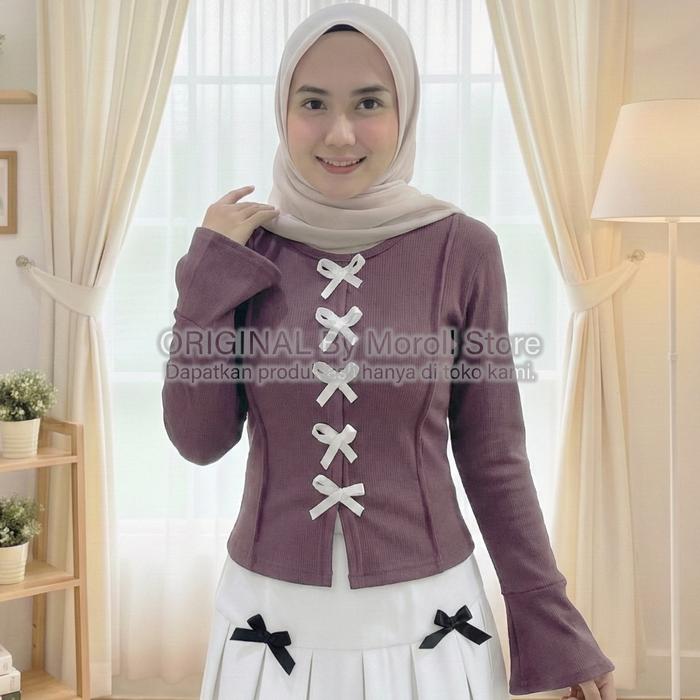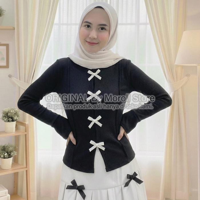 NEW ARRIVAL LEORA RIBBON BLOUSE CARDI WANITA TERBARU 2025 LD - HITAM, STANDART