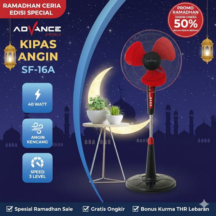 Advance kipas angin berdiri Stand Fan 16inch kipas angin duduk Kipas Meja kipas berdiri Stand fan kantor keluarga