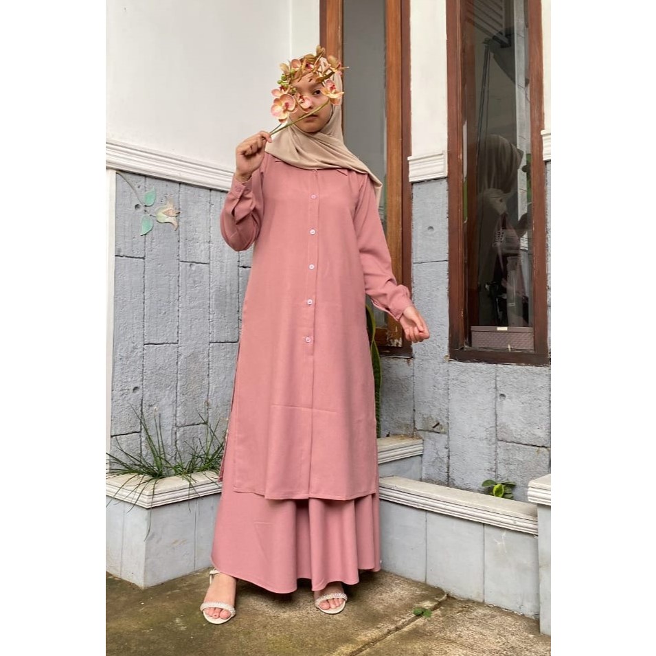 [Star] One Set + Rok Tunik HANUM Busui Wanita Muslim Jumbo Bahan Itty Creepe Terbaru / Size M L XL XXL