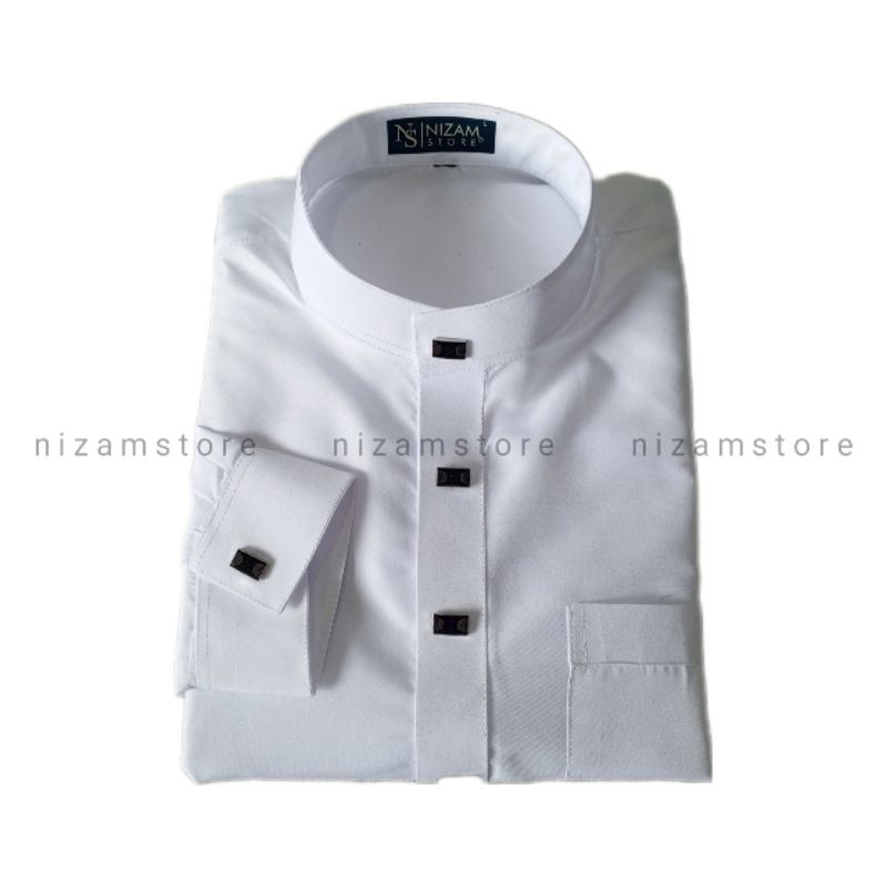 [Star] , Gamis Pria Jubah Polos Lengan Manset Kancing Snap Pria Dewasa Muslim Putih Hitam Haji Umroh
