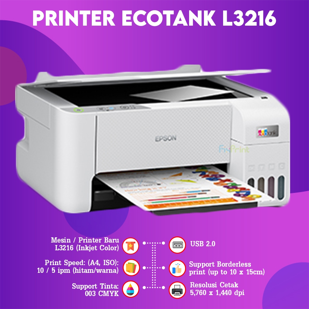 FixPrint Printer EcoTank Epson L3210 L3211 Black L3216 White Print Scan Copy All-in-One Pengganti Printer Multifungsi Ph
