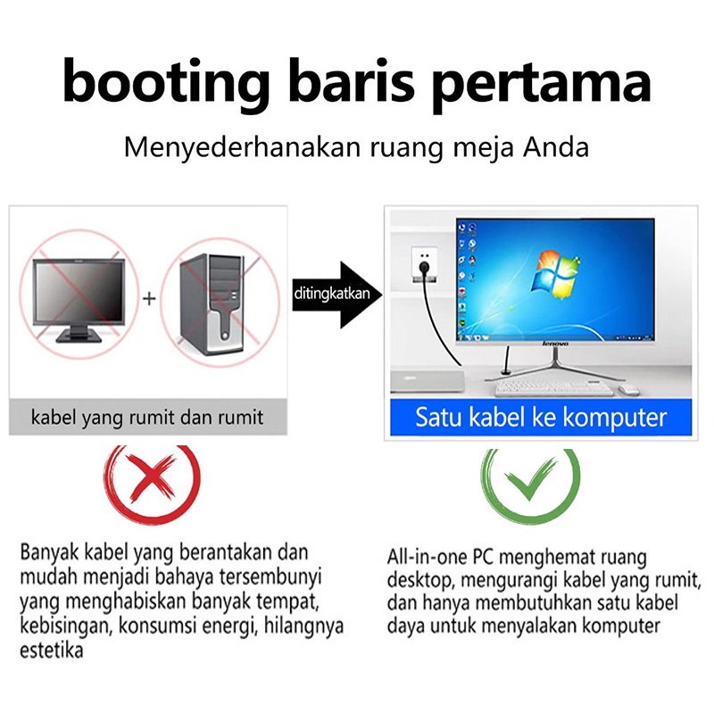 Lenovo PC All in One 19"/22"/24"/27" Intel Core i5/i7 Full Set Komputer RAM 8GB/16GB SSD 256GB/512GB/1TB Rumahan HD Buat