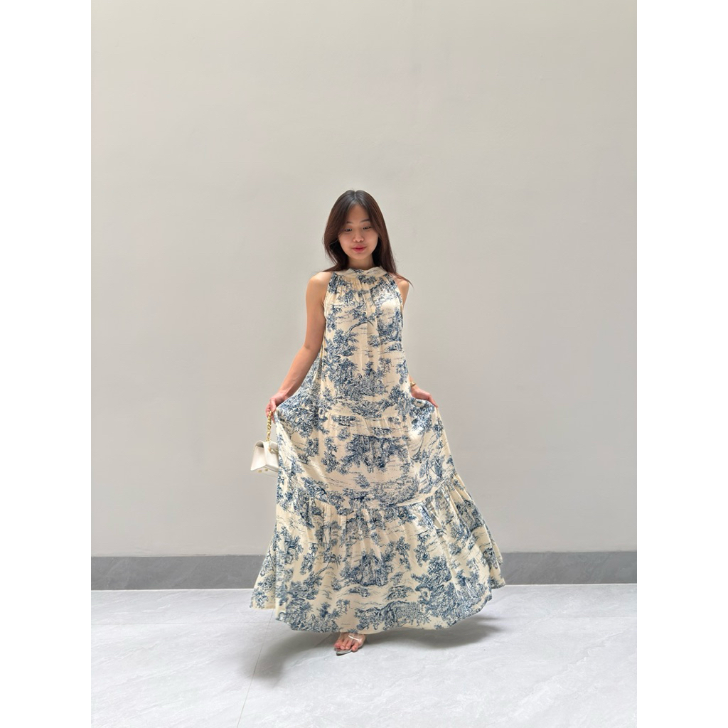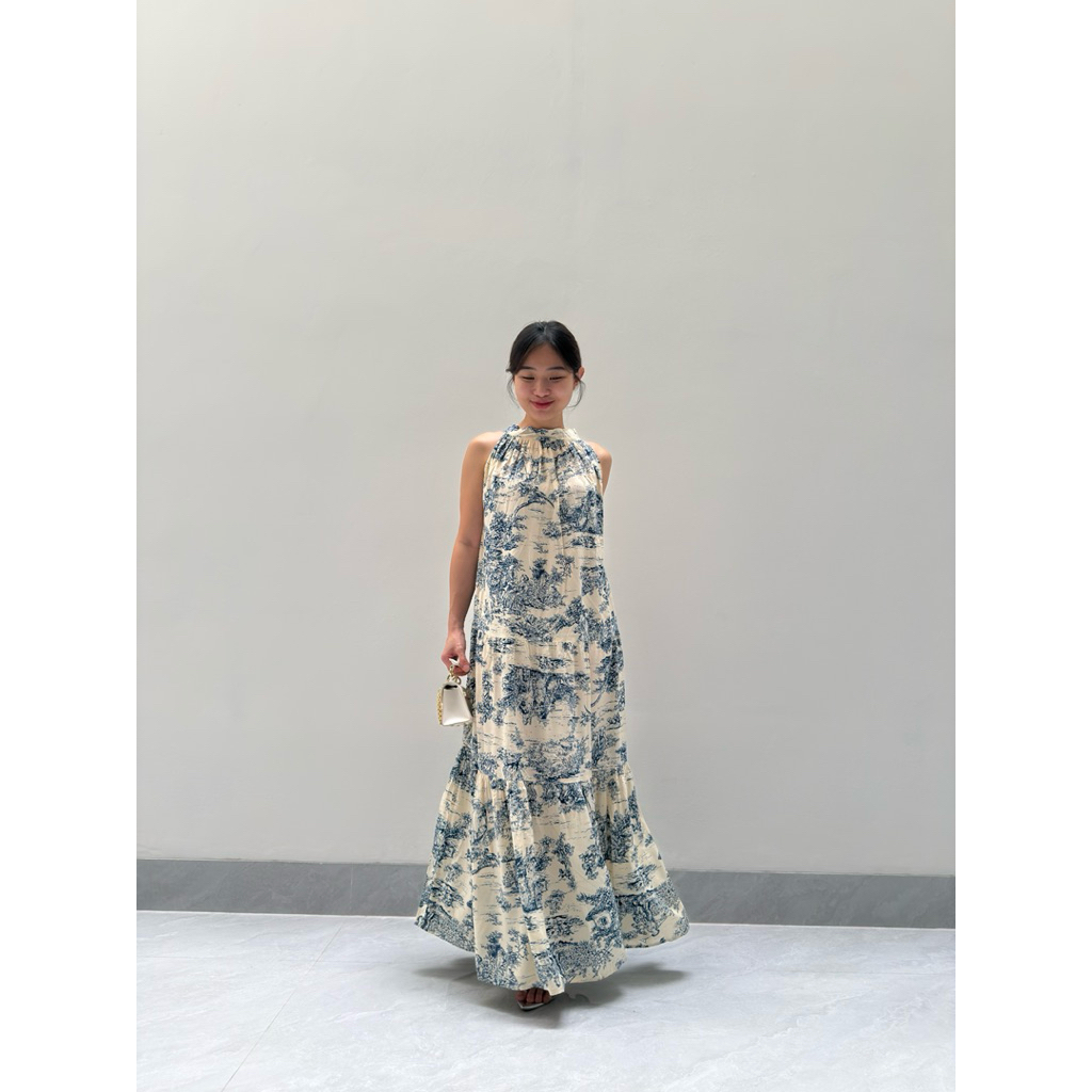TAHTA KENCANA - CAMILLE LONG HALTER MAXI DRESS WANITA CASUAL MOTIF KOREAN STYLE