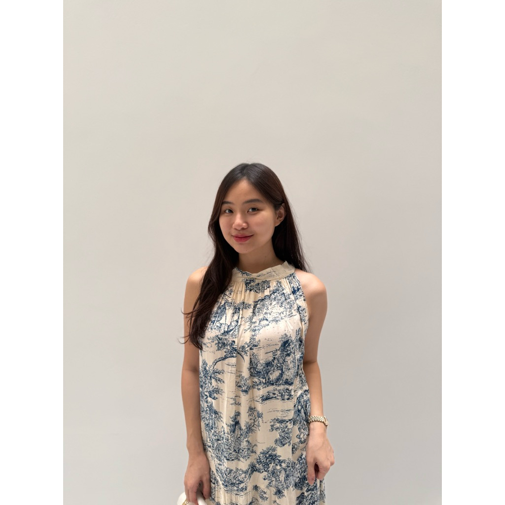 TAHTA KENCANA - CAMILLE LONG HALTER MAXI DRESS WANITA CASUAL MOTIF KOREAN STYLE