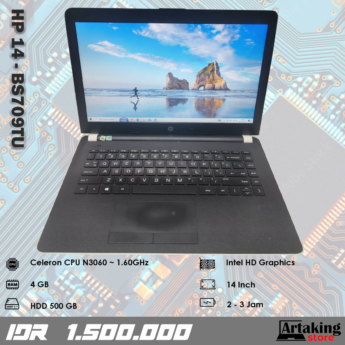 Hp 14 - bs709TU - Celeron N3060 - Ram 4 GB - Normal Siap Pakai