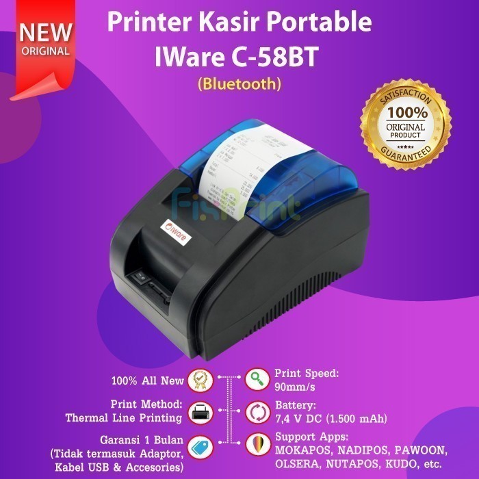 FixPrint Printer Kasir Iware THermal Xantri BT-58D Black / White USB Bluetooth 58mm - C58BT XP58IIZ C-58MPC V2 Mini Kasi