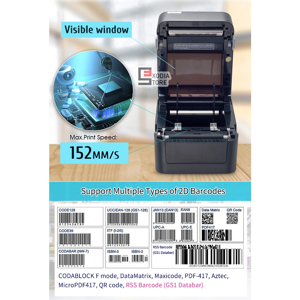 XPrinter XP D4601B Printer Bare Label Stiker A6 4601 USB Bluetooth Free Holder Kertas Support Android & Windows bisa un