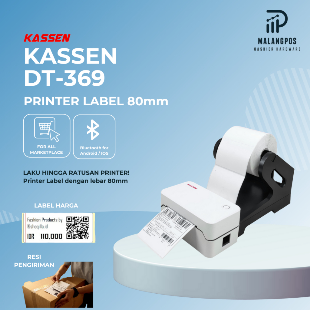 Kassen DT 369 Printer Bluetooth Printer Label Thermal DT369 USB Bluetooth 80mm Resi Pengiriman