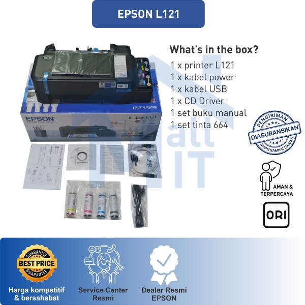 MALLIT EPSON Printer Epson L121 L-121 L 121 A4 Pengganti L120 L-120 Print Only Inkjet Resmi Medan