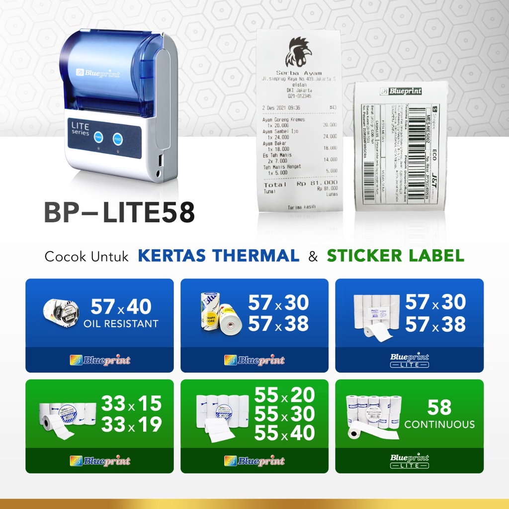 Printer Thermal Kasir Portable PPOB BLUEPRINT Lite 58 Bluetooth