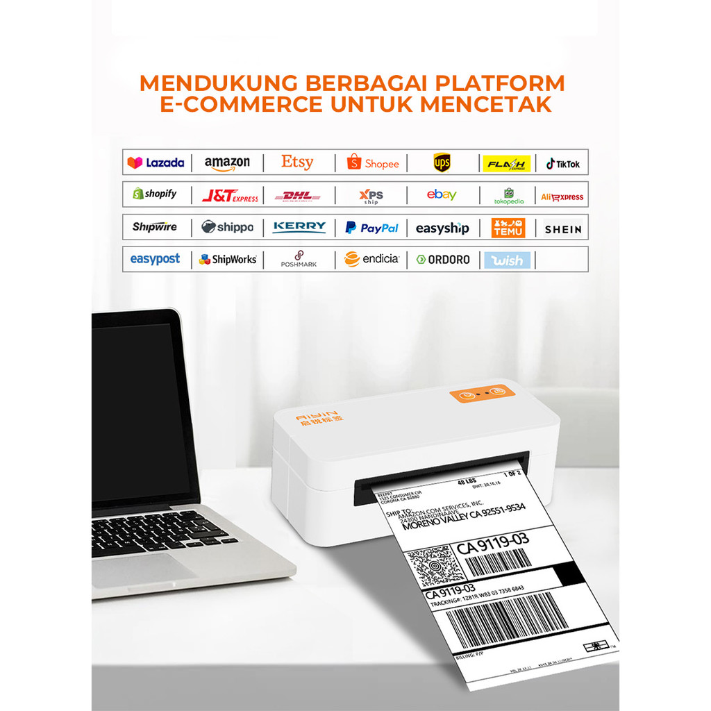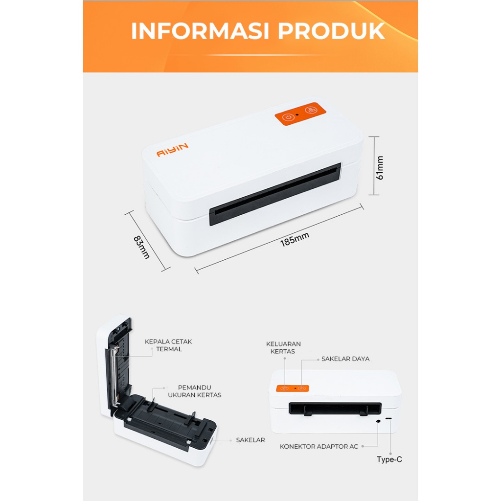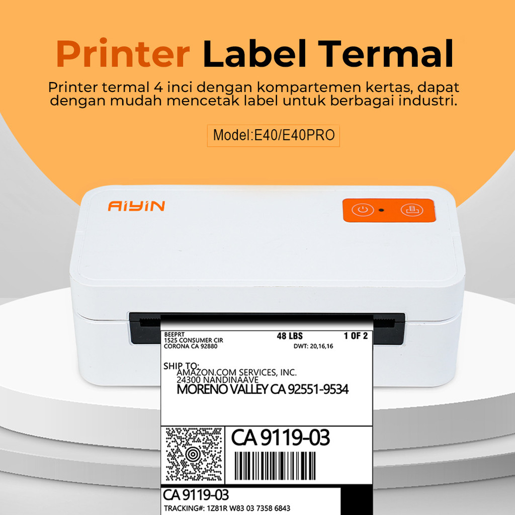 AiYin E40 Pro - Printer Thermal Resi Label Pengiriman Bluetooth Tanpa Tinta