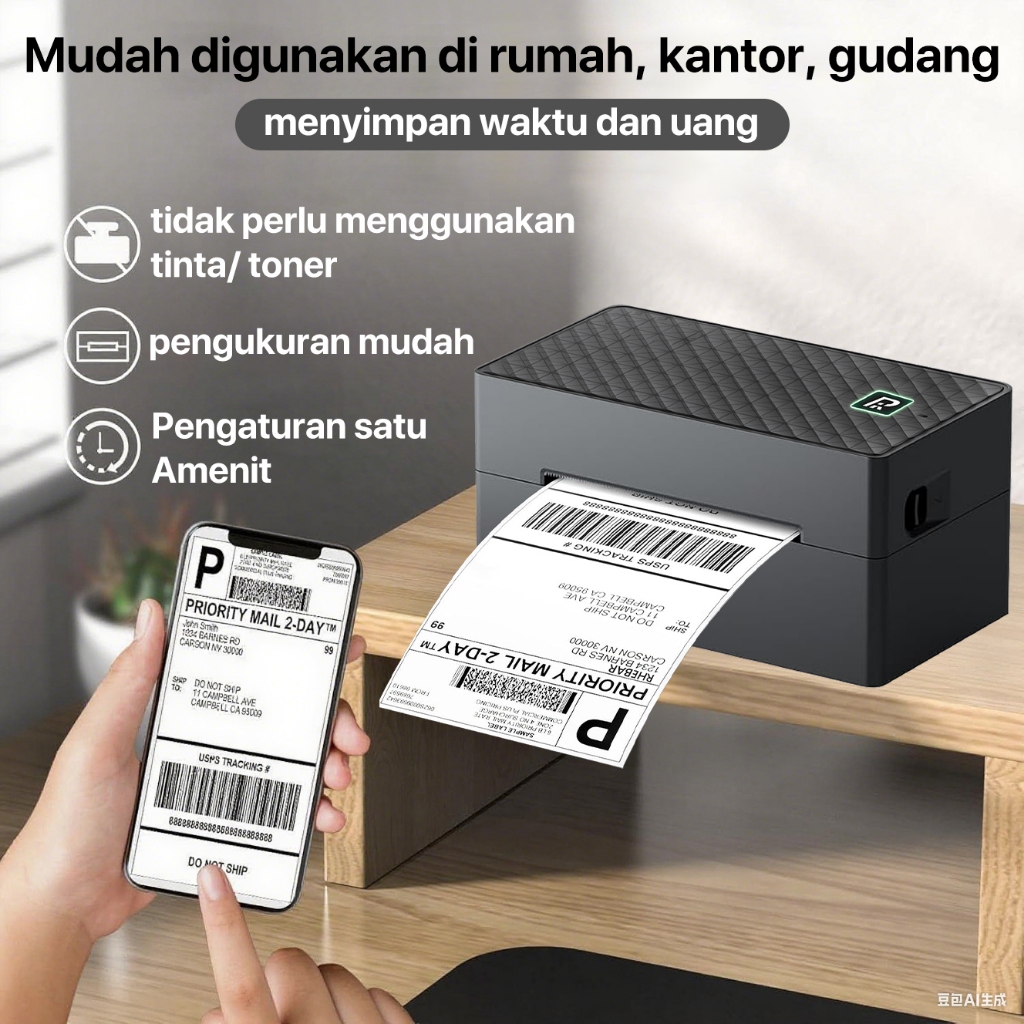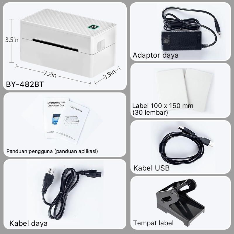 RHEBAR Printer Label Termal BY-482BT A6 Printer Sticker Printer Resi Printer bare USB+Bluetooth