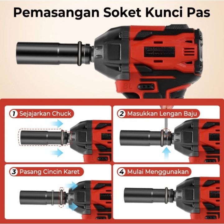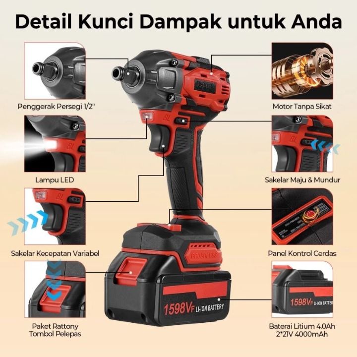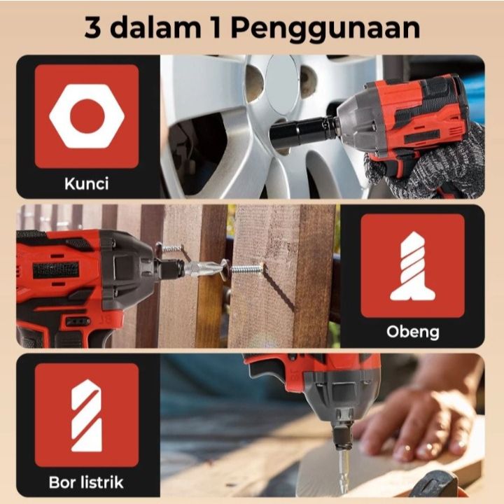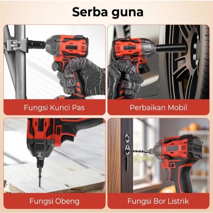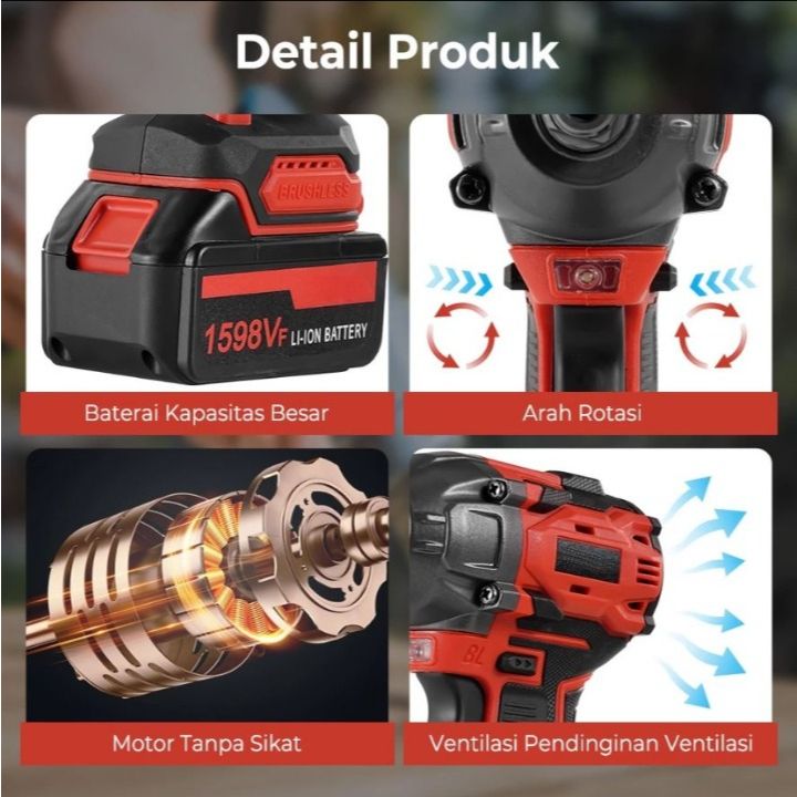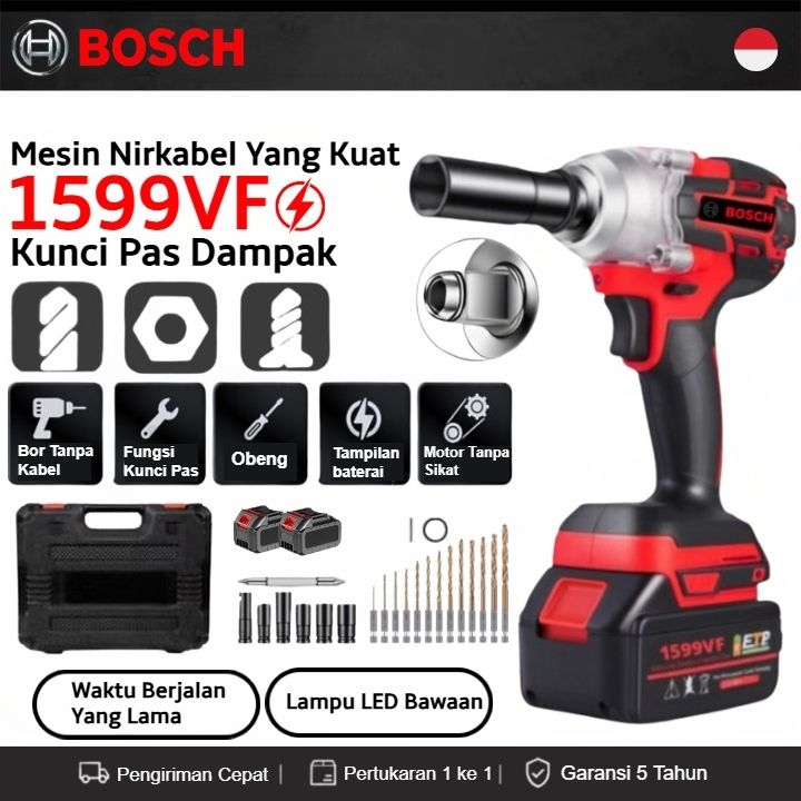 Bosch Cordless Impact Brushless Wrench Mobil Torsi Besar 2 Bater Mesin Bor Baterai Ori Makita Listrik 1 Set Lengkap
