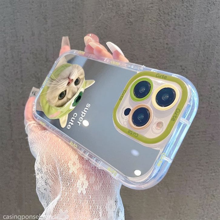 Case Mirror Hologr Softcase Couple Cat Full Protection hp Kelontong Unik Lucu For iPhone 11 PROMAX 12 PRO 13 PRO MAX 14