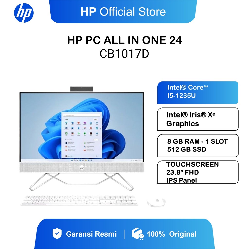 HP ALL IN ONE PC TOUCH INTEL CORE I5-1235U RAM 8GB 512GB SSD 23.8″ FHD WIN11+OHS - CB1017D