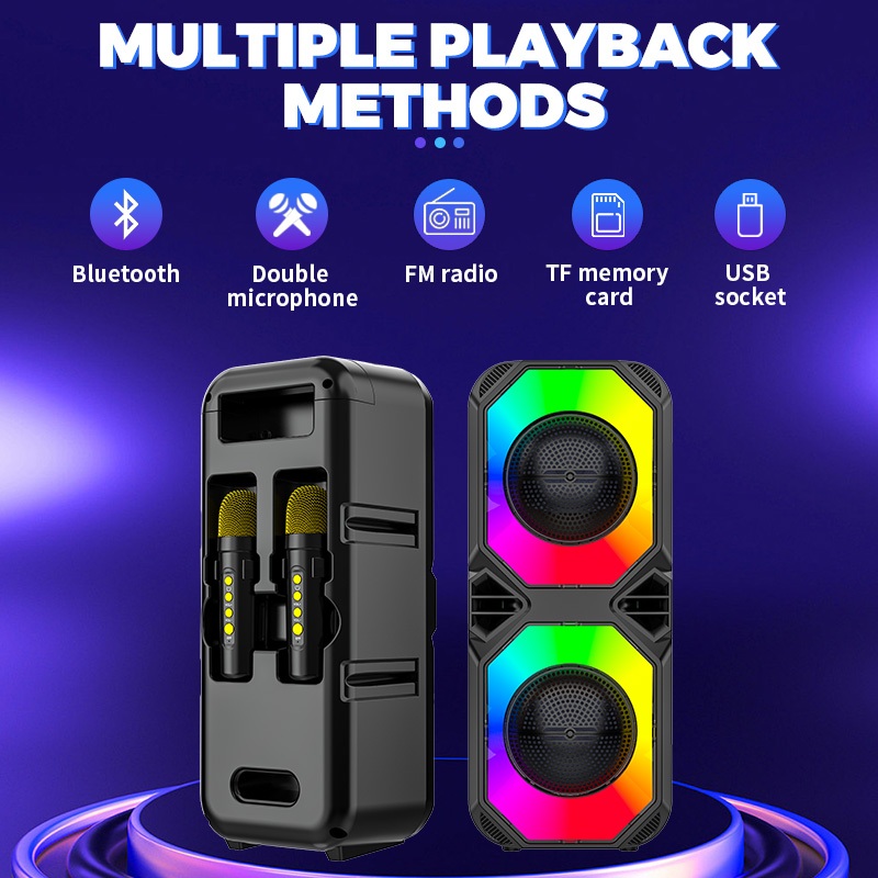 MAIKET Speaker Bluetooth Karaoke Super bass Subwoofer Salon Full Bass 2 Mic Wireless-Garansi 3 tahun