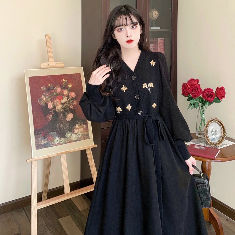SUSANA ID VINTAGE CORDUROY DRESS WITH FLORAL EMBROIDERY B012D