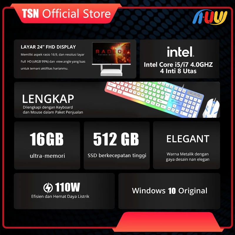 Huw PC layar sentuhKomputer All in one PC gaming Core Intel i5/i7 RAM 8G/16G SSD 256G/512GB/1T Desktop Layar sentuh lipa