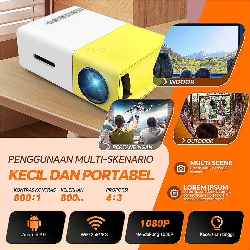 YG300 Proyektor Mini Portable Hp Android 4K Full HDMI Led Mini Proyektor TV Mini Home Theater Dukungan Mirroring Ponsel Dan Presentasi Menonton Film Mini Projector