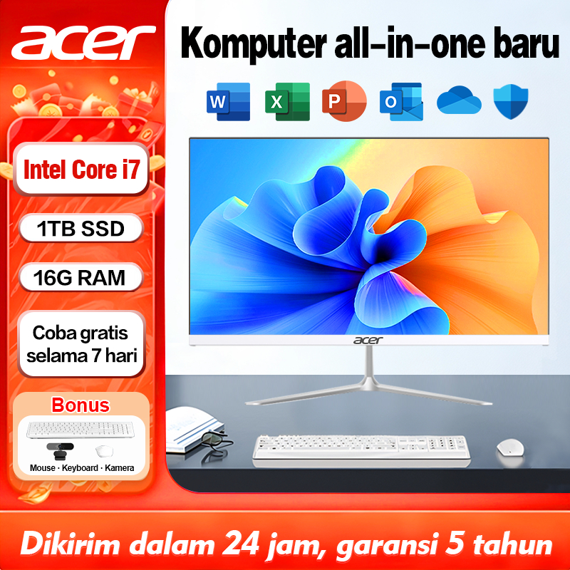 Komputer All-in-One HD Ultra Tipis Acer Terbaru Intel Core i3/i5/i7 untuk Rumah, Belajar, Kantor, dan Hiburan - 19/22/24
