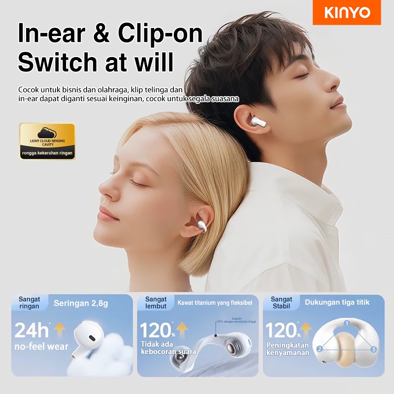 Kinyo A20 TWS four headset bluetooth 5.4 Headset Wireless in ear AI HD Noise Reduction call Henset Ear Clip 4g Ringan Nyaman Dipakai