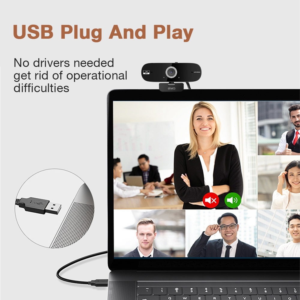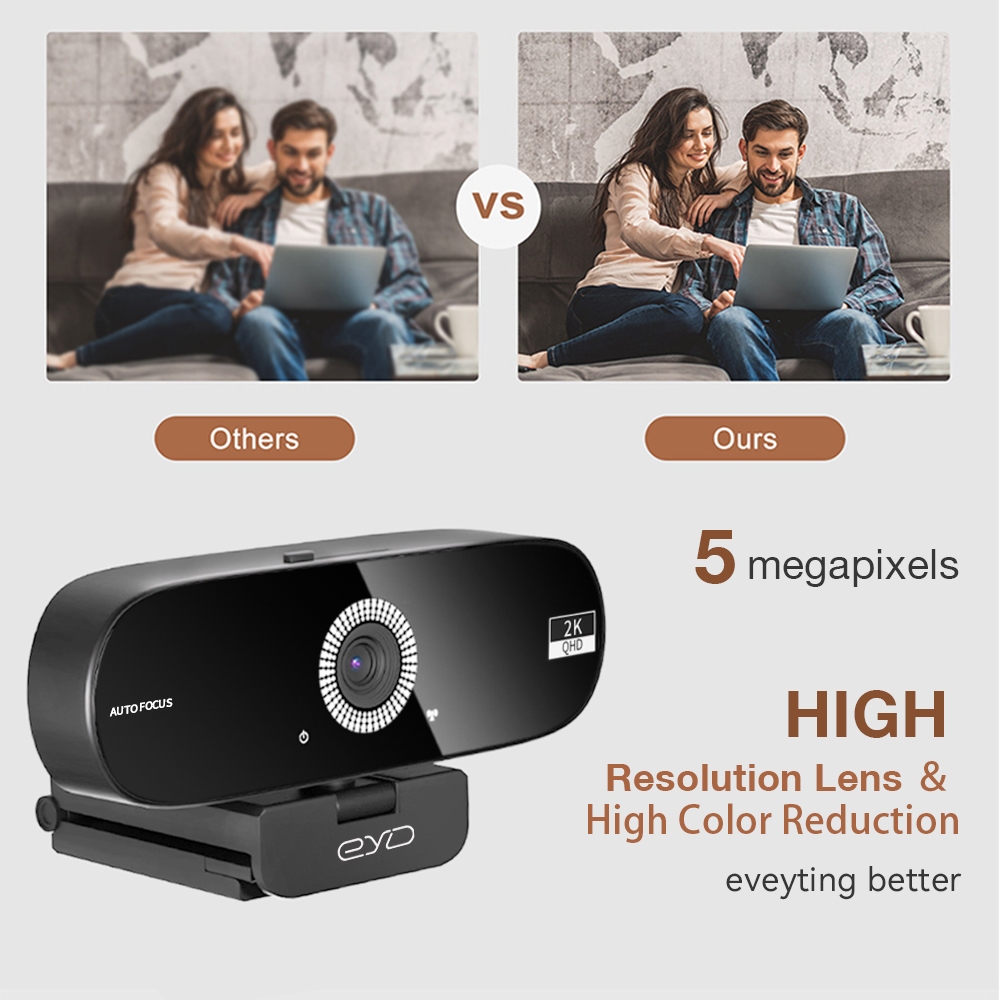 EYD HD 2k PC Webcam Laptop USB Camera with 360° Degree Rotation and Microphone Autofocus Live Webcam Conference Camera PC02