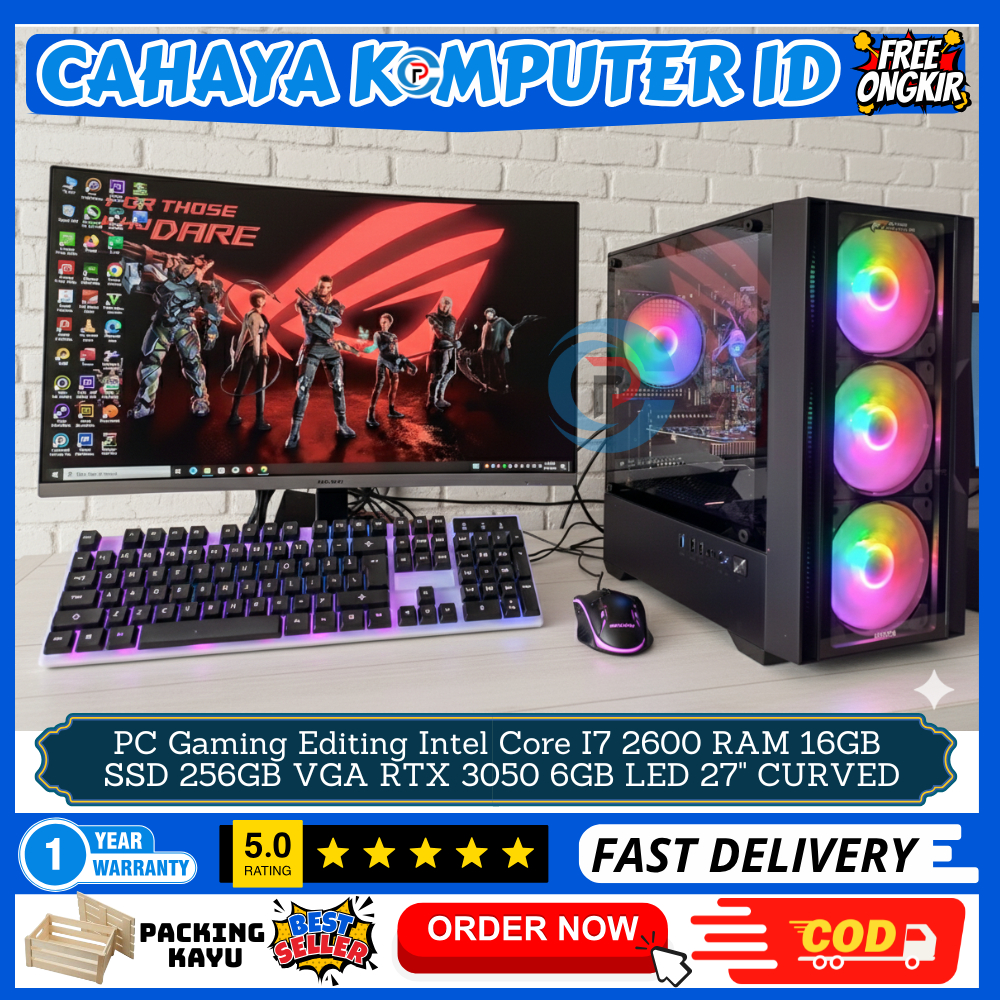 PC Gaming Editing Fulset Intel Core I7 RAM 16GB SSD 256GB VGA RTX 3050 6GB LED CURVED 27" SIAP PAKAI