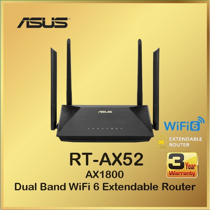 ASUS RT-AX52 Dual Band WiFi 6 AX1800 Extendable Router with AiMesh