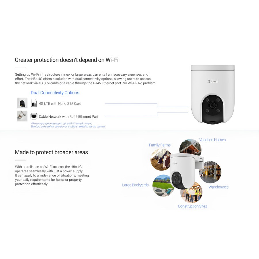 Ezviz H8c 4G 2K+ Outdoor CCTV Pan & Tilt Wifi IP Camera Auto Tracking