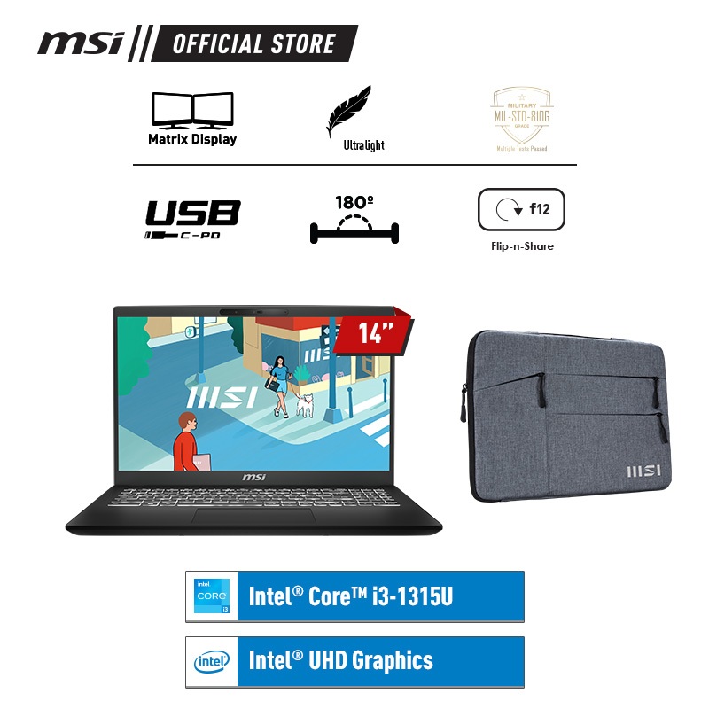 MSI Modern 14 Core i3-1315U 8GB 512GB W11 FHD IPS 14 Inch