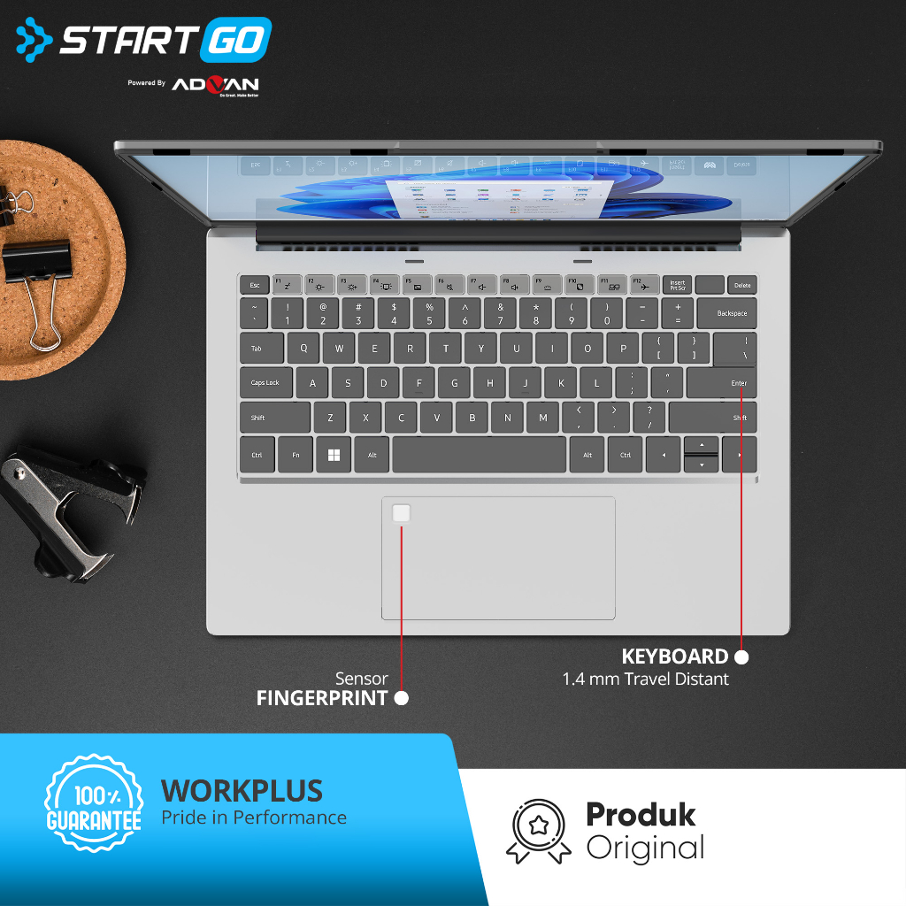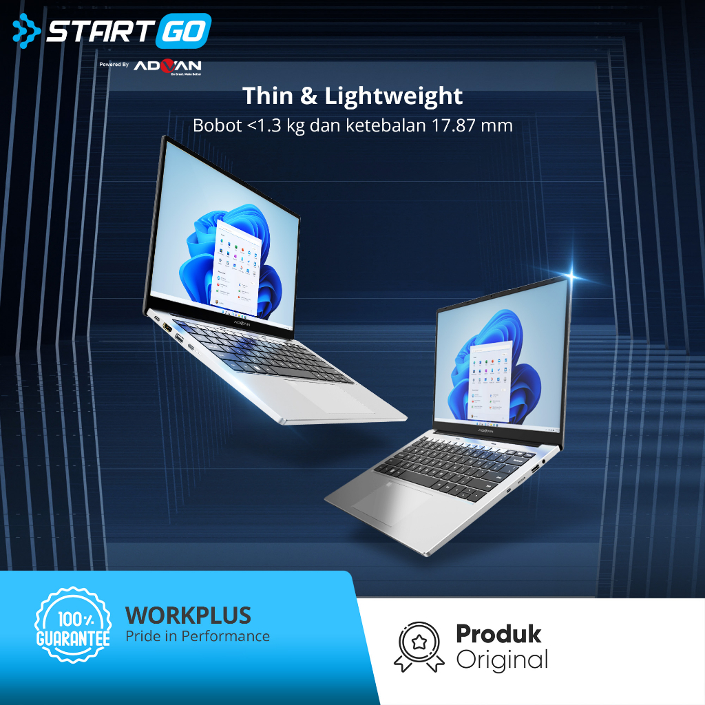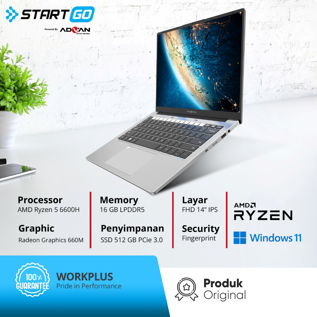 ADVAN Laptop Workplus AMD RYZEN 5 6600H 14'' FHD IPS 16GB 512GB 1TB Win 11