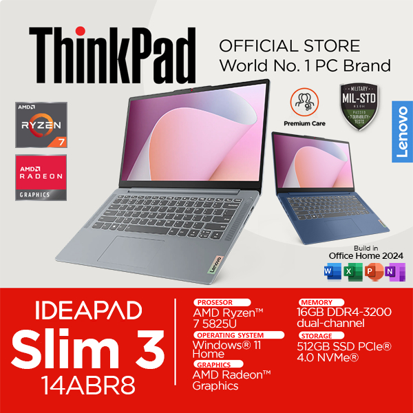Lenovo Ideapad Slim 3 AMD Ryzen 7 5825u 16GB 512SSD Windows 11 Office IPS 14 Inch FHD 14ABR8 91ID