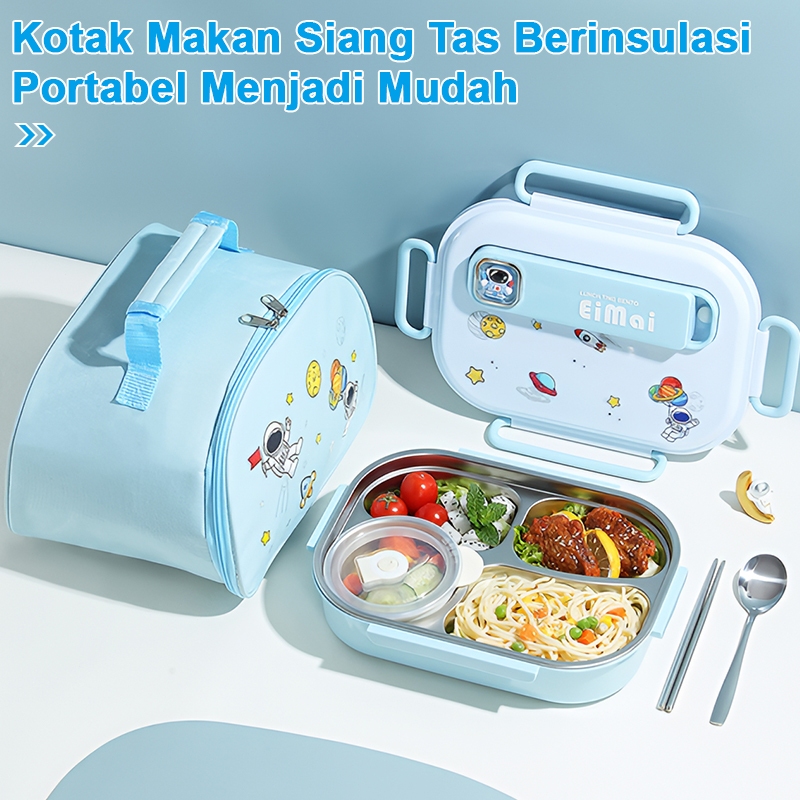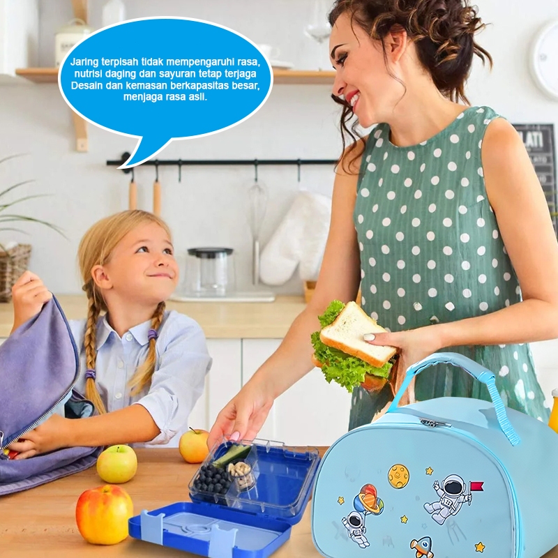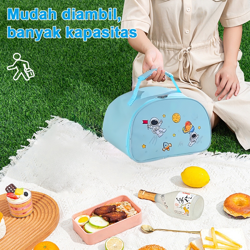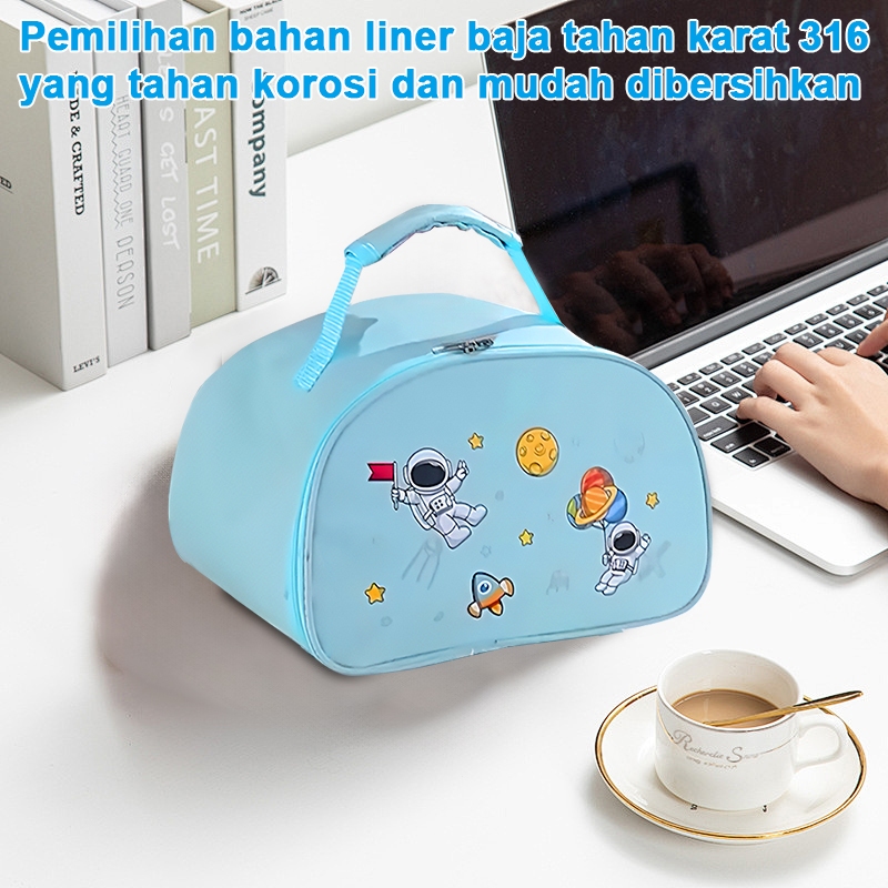 Lunch Bag Anak Insulasi Panas Dingin Desain Astronot Lucu Tas Bekal Sekolah & Piknik Portabel
