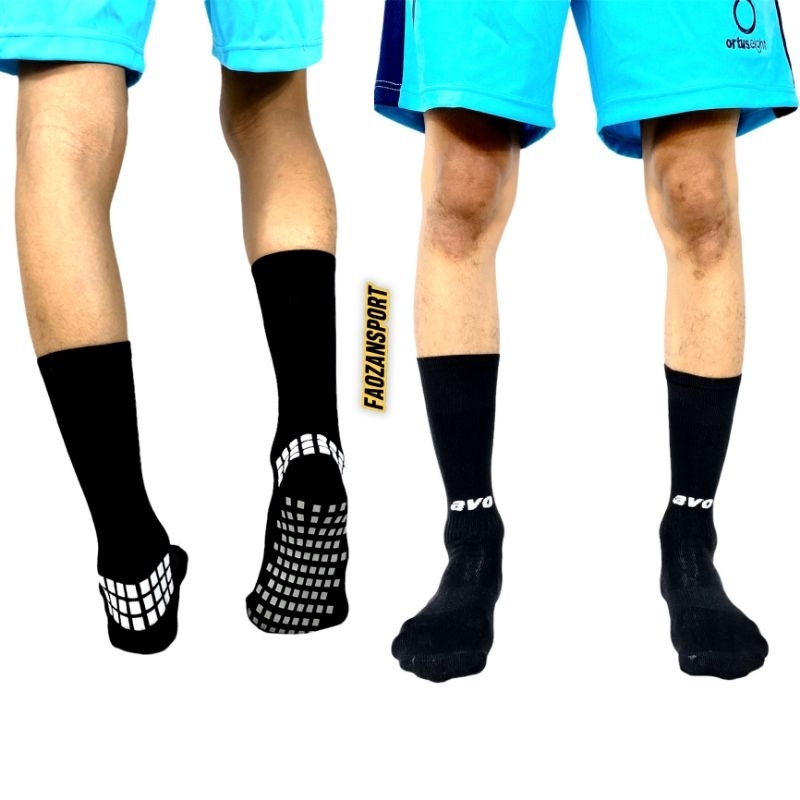 Kaos Kaki Avo Futsal R9 Sepak Bola Anti Slip Pendek sebetis Hitam Putih