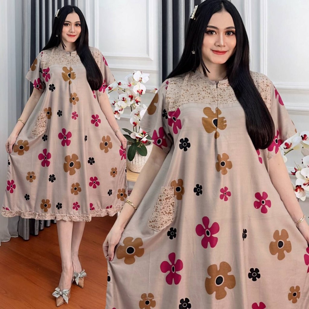 Daster Rayon Jumbo Busui Bumil Resleting Depan Lengan Pendek Batik Wanita Kekinian BatikBatara