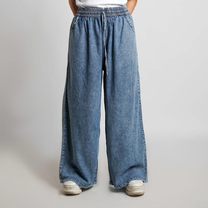 Celana Kulot Panjang Jeans Wanita Fit Super Jumbo 100kg Bigsize Pinggang Karet Denim Coco - DLINE