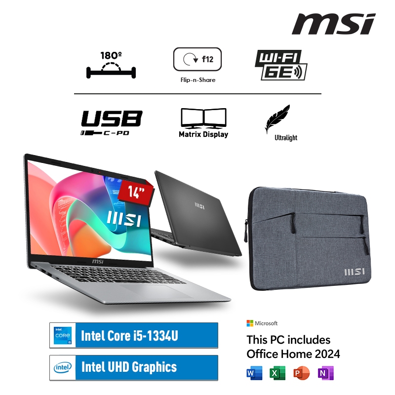 MSI Modern 14 F13MG i5-1334U 512GB SSD 8GB 14" FHD W11 Home+OHS21