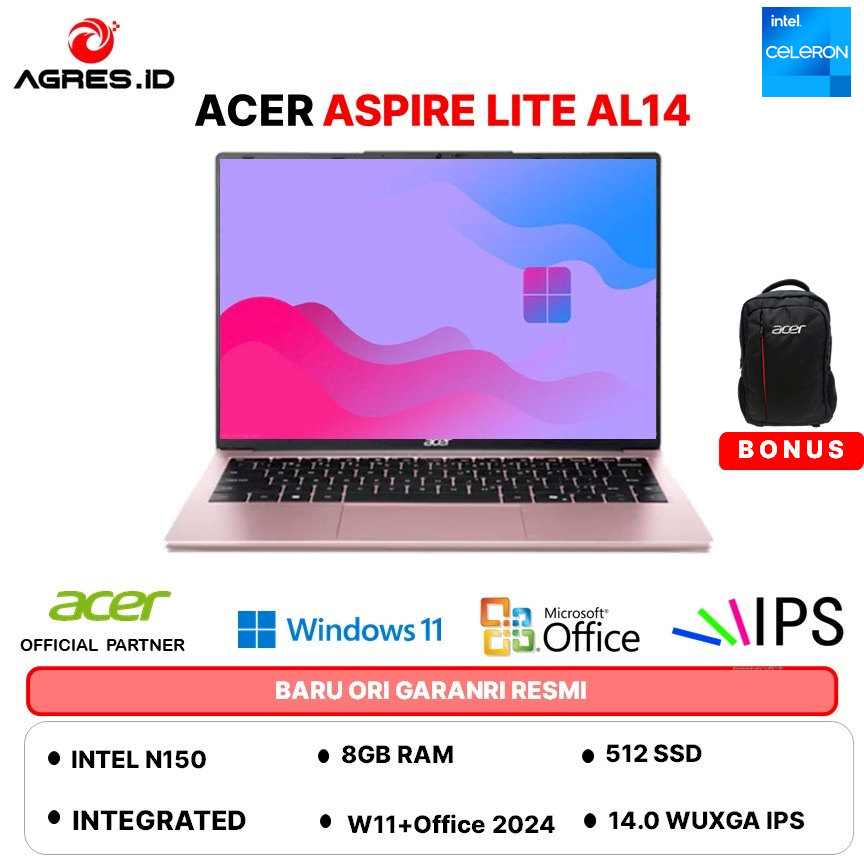 NEW LAUNCH - ACER ASPIRE LITE AL14 INTEL N150 - RAM 8GB 512GB W11+OHS+ 14.0WUXGA -32P.C6CC