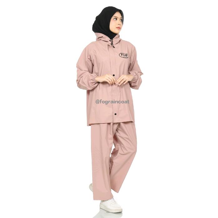 Jas Hujan FOG Pria Wanita Bahan Tebal Dan Elastis / Mantel Hujan / Raincoat Waterproof Dewasa - CREAM M