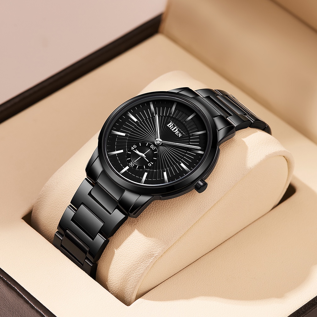 BIDEN Jam Tangan Pria Bisnis Santai Mode Anti Air Kuarsa Tali Stainless Steel Jam Tangan Cowok Original